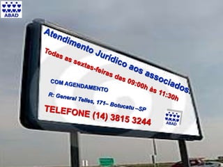 O documento fornece informações sobre a Associação Botucatuense de Assistência ao Diabético (ABAD). A ABAD oferece cursos de nutrição, consultas médicas, exames de glicemia e apoio psicológico para portadores de diabetes. Além disso, a ABAD promove palestras educativas sobre diabetes na mídia e em parceria com empresas e instituições da região.