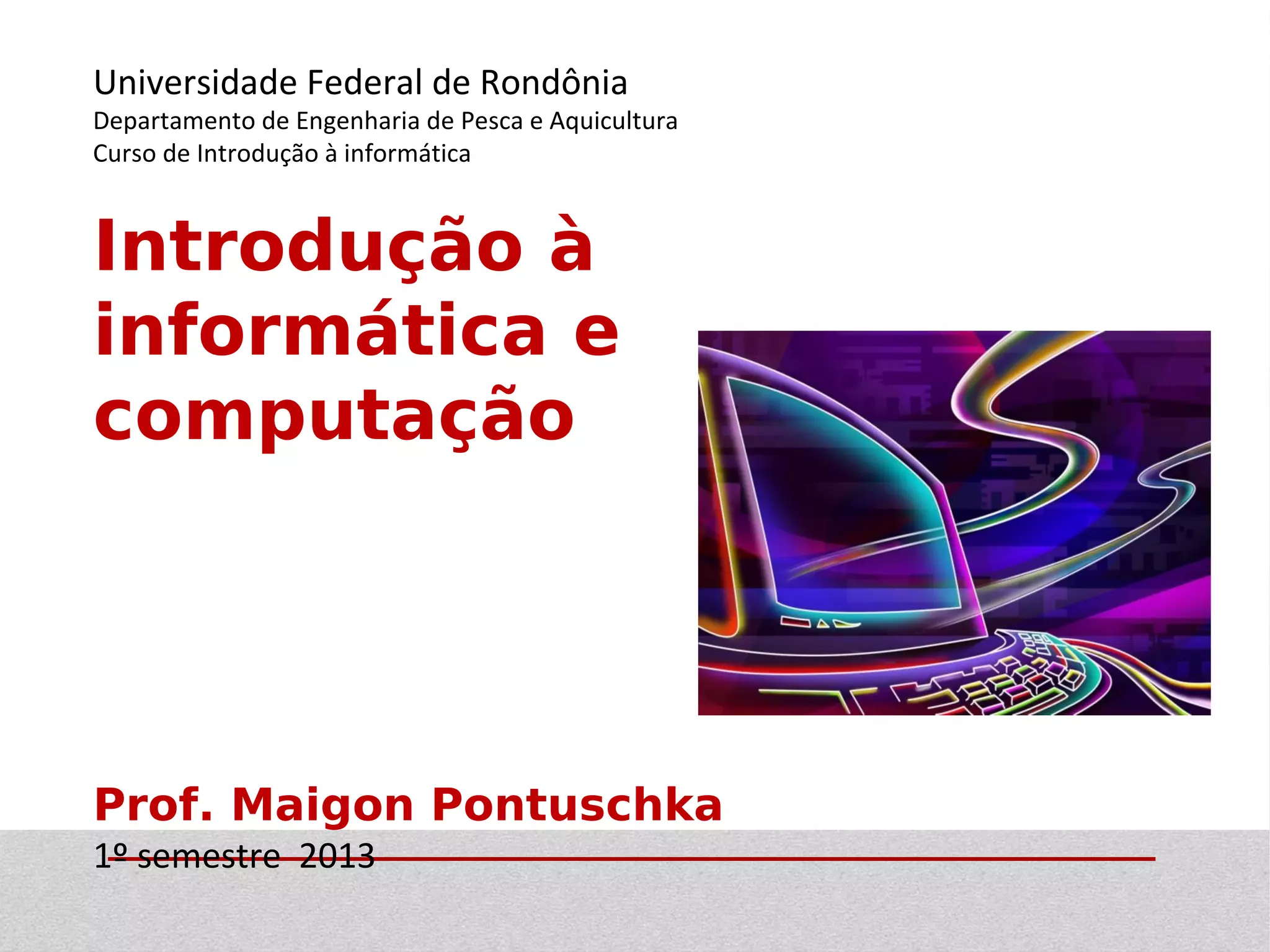 Este documento apresenta o plano de curso "Introdução à Informática e Computação" oferecido pela Universidade Federal de Rondônia. O curso consiste em dois módulos: o primeiro ensina ferramentas do Microsoft Office e conceitos básicos de informática, e o segundo introduz conceitos e ferramentas da Web 2.0 como blogs, redes sociais e compartilhamento de conteúdo. Os alunos serão avaliados por meio de trabalhos individuais e em grupo, apresentações e provas.