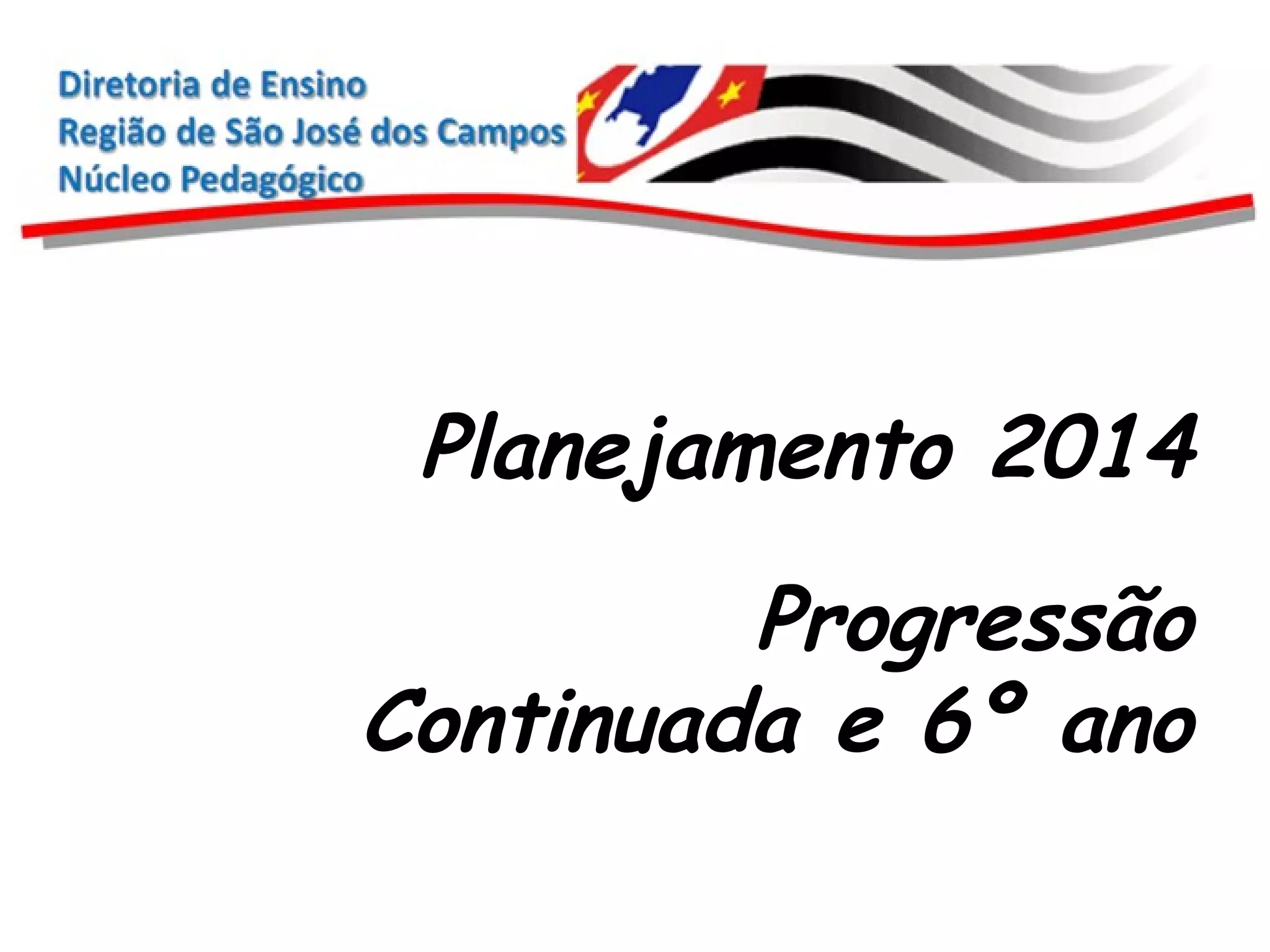 O documento discute a progressão continuada e o 6o ano. Ele mostra que os alunos terão aprovação automática até o 5o ano e podem prosseguir seus estudos no 6o ano. O documento também detalha reuniões com professores do 6o ano para discutir a progressão continuada, ciclos de aprendizagem e avaliação nesse regime.