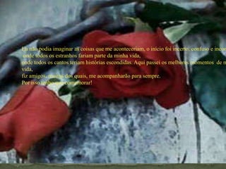 O documento é uma apresentação de despedida de um professor para seus alunos. Ele reflete sobre os bons momentos que teve ensinando os alunos, as amizades que fez e o conhecimento que os alunos adquiriram. Ele agradece a paciência dos alunos em aprender e os ensinamentos sobre o futuro da tecnologia.