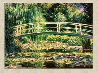 Monet nasceu na França no século XIX e se tornou um dos pintores impressionistas mais famosos. Sua carreira artística foi apoiada por sua tia e ele se mudou para Paris para estudar pintura, onde conheceu sua esposa Camille. Ele é conhecido por pinturas como "Impressão, Nascer do Sol" e passou anos pintando em Giverny, onde criou seu famoso jardim.
