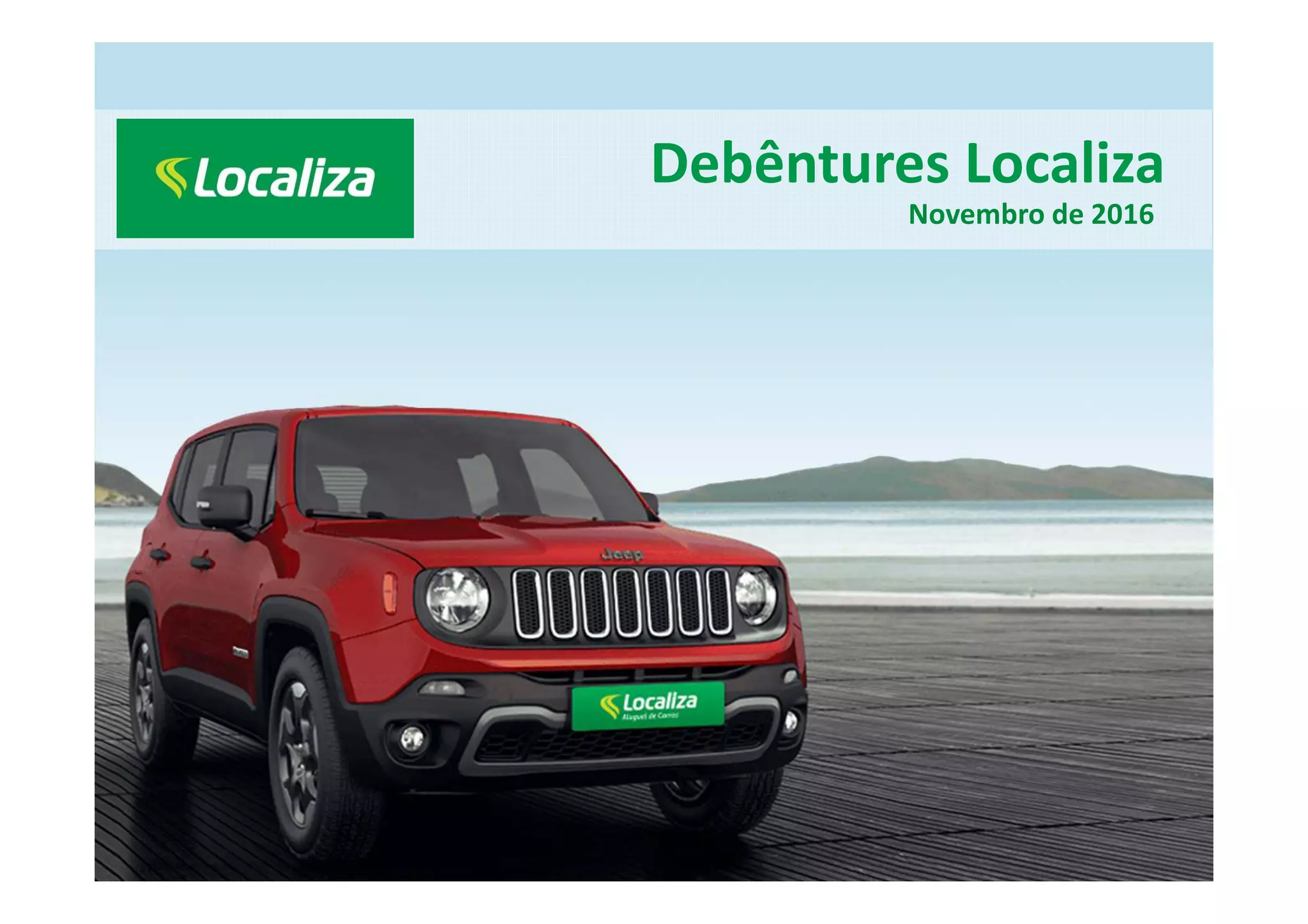 O documento fornece uma visão geral da Localiza, sua divisão de negócios principais (aluguel de carros, gestão de frotas e venda de seminovos) e dados financeiros. Apresenta as vantagens competitivas da Localiza no aluguel de carros, aquisição de veículos, captação de recursos e venda de seminovos.