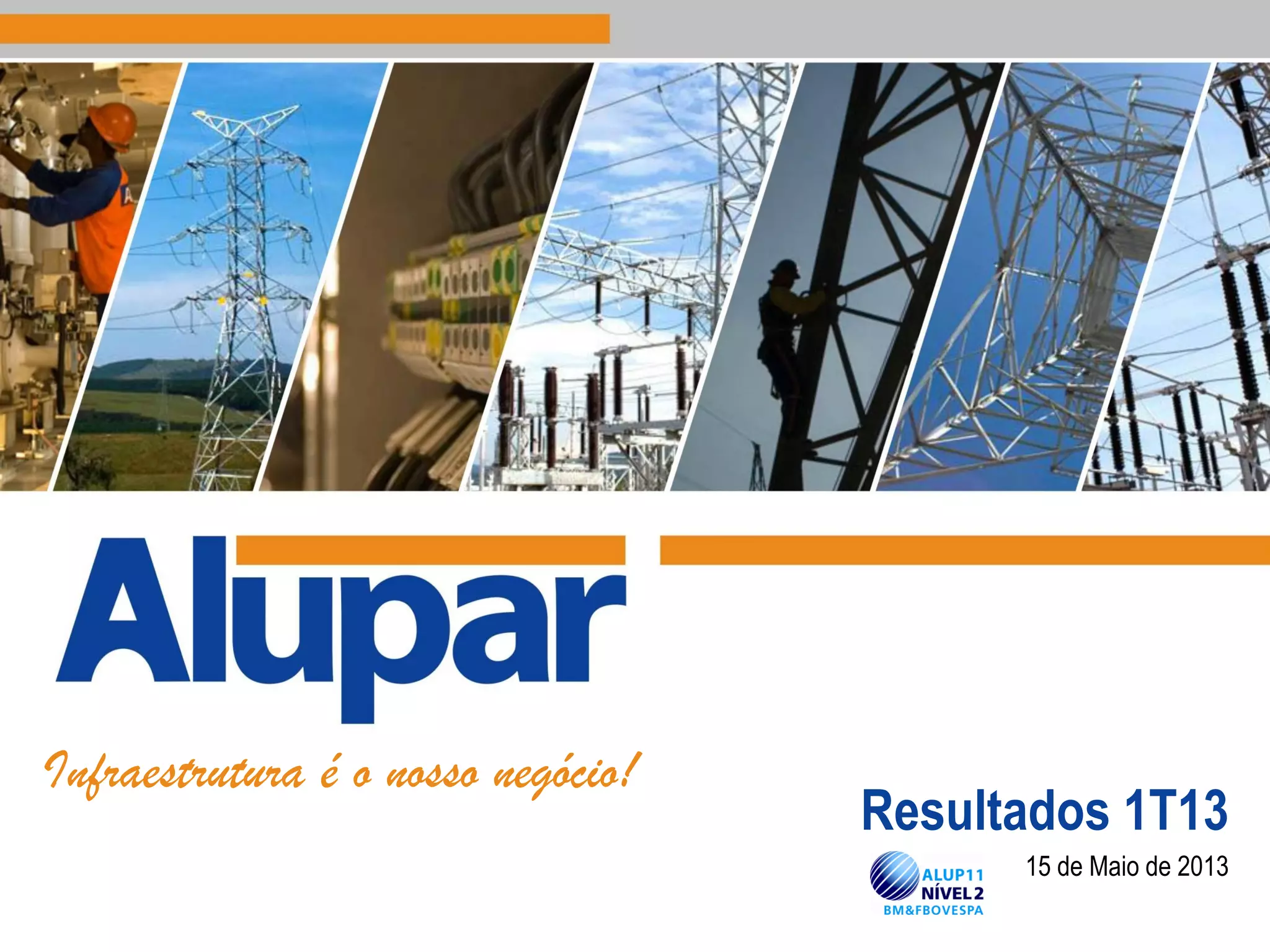 O documento apresenta os resultados financeiros do primeiro trimestre de 2013 da empresa Alupar, com destaque para:
