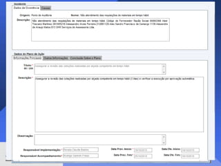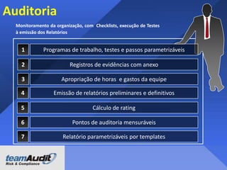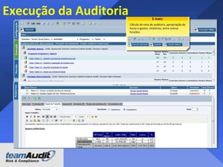 O documento discute auditoria contínua e monitoramento contínuo de uma perspectiva prática. Apresenta o Caseware como fornecedor líder de softwares para análise de dados, auditoria contínua e monitoramento contínuo. Também discute os conceitos de auditoria contínua, monitoramento contínuo e análise de dados, além de exemplos práticos de como aplicar esses conceitos.