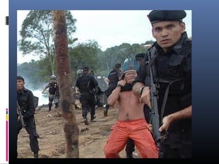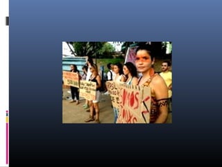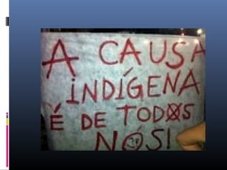 O documento discute a história do Dia do Índio no Brasil, celebrado em 19 de abril, e destaca os conflitos enfrentados pelos índios Guarani-Kaiowá no Mato Grosso do Sul com fazendeiros pela posse de terras. Também apresenta a série de programas educativos "Índios no Brasil" que mostra a vida e perspectivas de nove povos indígenas brasileiros.