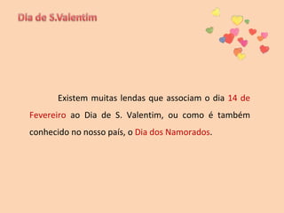 1) No dia 14 de Fevereiro comemora-se o Dia de S. Valentim, conhecido como o Dia dos Namorados no Brasil.