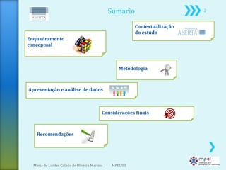 1) O objetivo do estudo era compreender o desenvolvimento de competências de tutores online e identificar características iniciais dos tutores.