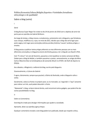 Apresentação do blog "BURACO SUPER NEGRO" feita pelo editor-chefe,redator,blogueiro-responsável e jornalista Gabriel Birkhann.