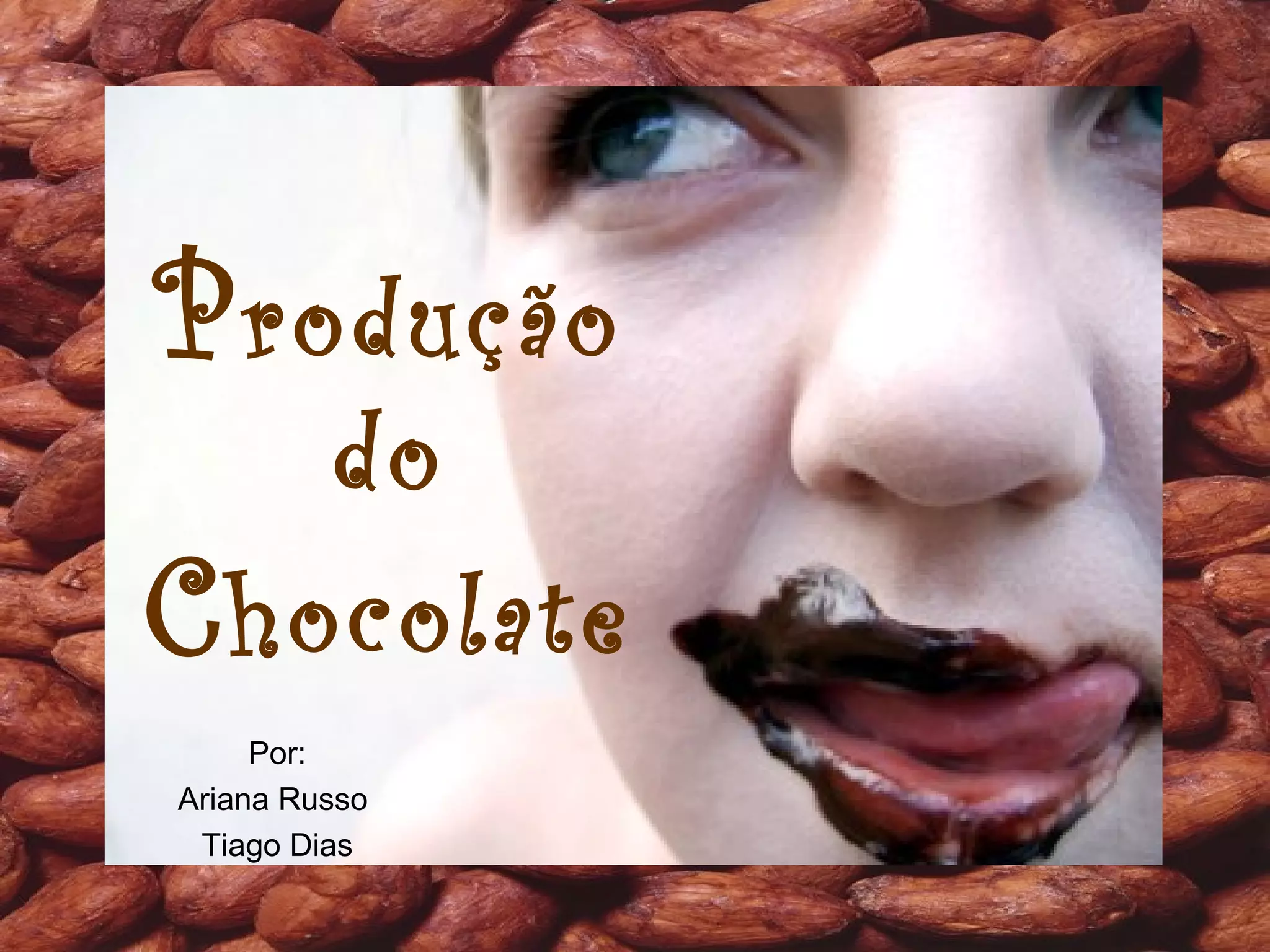 O documento descreve o processo de produção do chocolate, desde a colheita das amêndoas de cacau até o seu processamento e fabricação final. Inclui etapas como fermentação, secagem, limpeza, torrefação, moagem, extração de manteiga de cacau, mistura, conchagem e temperagem. Também menciona os diferentes tipos de chocolate produzidos e as propriedades benéficas do cacau para a saúde.