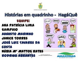 O documento fornece instruções passo-a-passo para usar o software HagáQuê, um editor de histórias em quadrinhos feito em Delphi. Ele explica como adicionar cenários, figuras, sons, texto e publicar a história na internet.