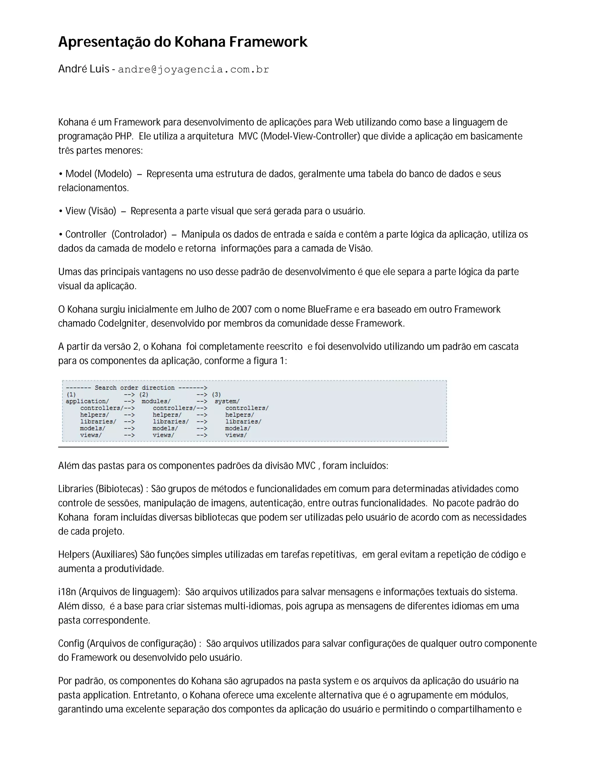 Documentação: A documentação do Kohana é completa e de fácil entendimento, além de possuir diversos tutoriais