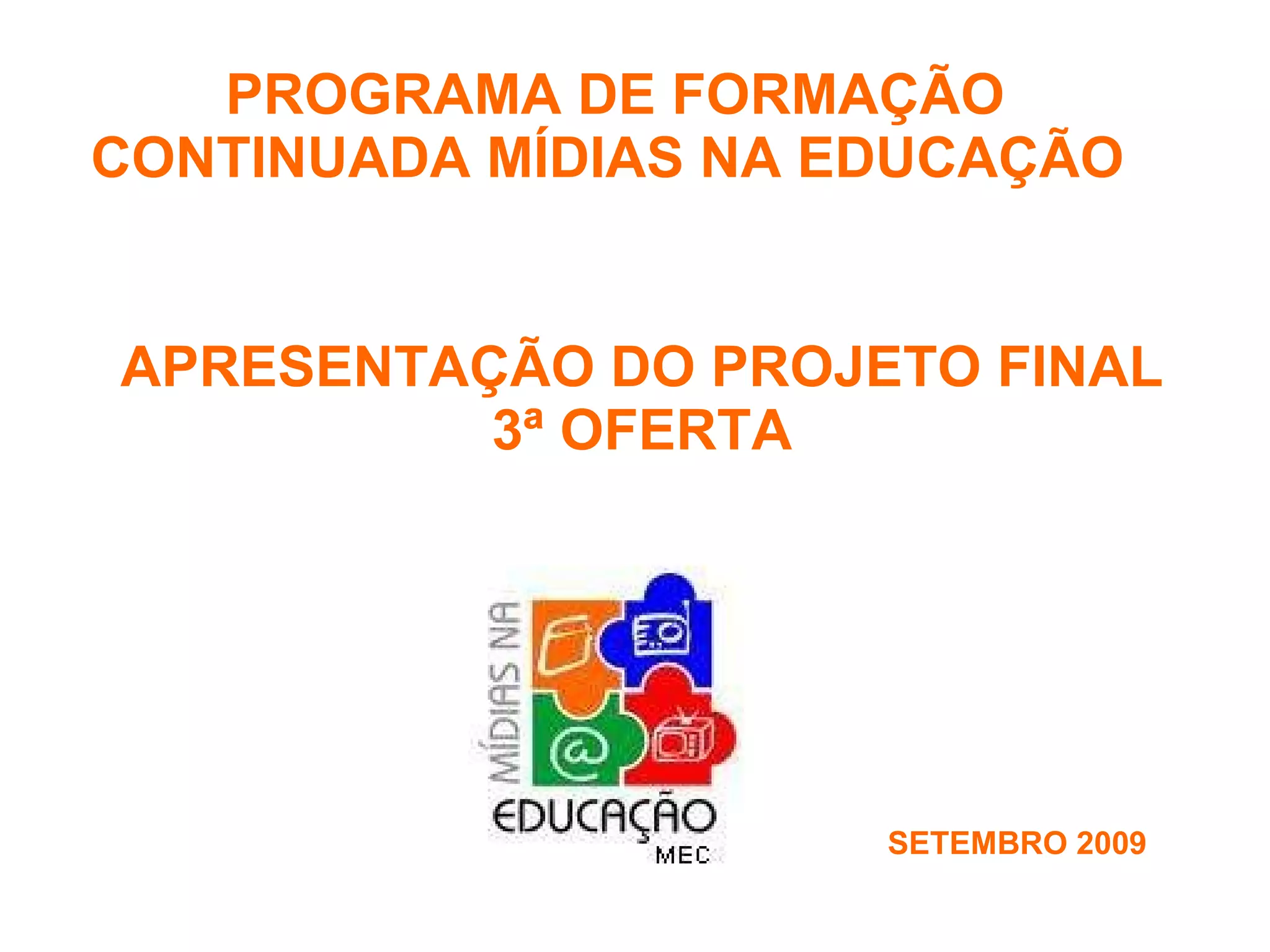 O documento apresenta uma lista de projetos finais de cursistas de um programa de formação continuada em mídias na educação. Os projetos incluem o uso de rádio, jornal, TV e vídeo em atividades escolares em diversas cidades do Acre.