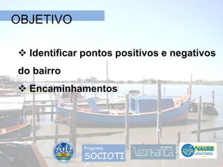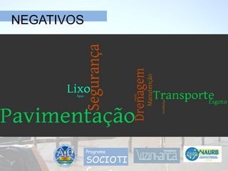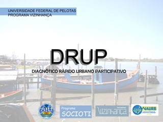 O documento descreve um diagnóstico rápido urbano participativo (DRUP) realizado pela Universidade Federal de Pelotas para identificar pontos positivos e negativos de bairros através de grupos de discussão. O DRUP usou a metodologia do programa SOCIOTIC para organizar os grupos e compilar os resultados.