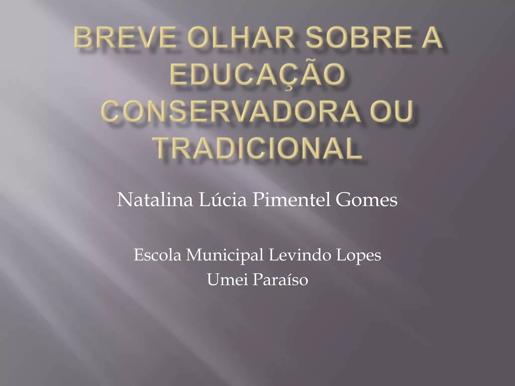 O documento descreve a abordagem educacional tradicional, na qual o professor transmite conhecimento aos alunos de forma passiva, a escola serve para transmitir um conteúdo cultural selecionado, e os alunos são vistos como receptores do conhecimento do professor.