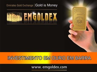 O documento descreve um programa de investimento em ouro chamado Emgoldex, que permite aos participantes ganhar dinheiro atraindo novos investidores. A Emgoldex vende lingotes de ouro físico e oferece duas mesas de investimento, uma preliminar e uma principal, onde os participantes podem ganhar bônus por cada novo investidor recrutado. O documento detalha os níveis, bônus, taxas e opções de recebimento do ouro ganho no programa.