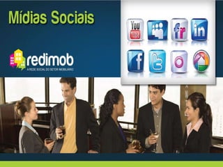 O documento discute as redes sociais e como direcionar as ações de marketing nelas. Apresenta 10 passos que incluem focar nas ações de comunicação, ter presença constante, engajar a audiência, manter relevância do conteúdo, ter interação e abrangência global. O objetivo é integrar as ações online e offline para o mercado imobiliário.