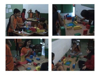 Este documento descreve o estágio de uma estudante de licenciatura em uma escola particular. Ela observou aulas de matemática da 7a série e analisou o perfil dos alunos, da professora e o método de ensino construtivista adotado na escola, que envolve atividades práticas e em grupo. Ela também elaborou uma sequência didática sobre ângulos usando uma atividade de construção de maquetes.