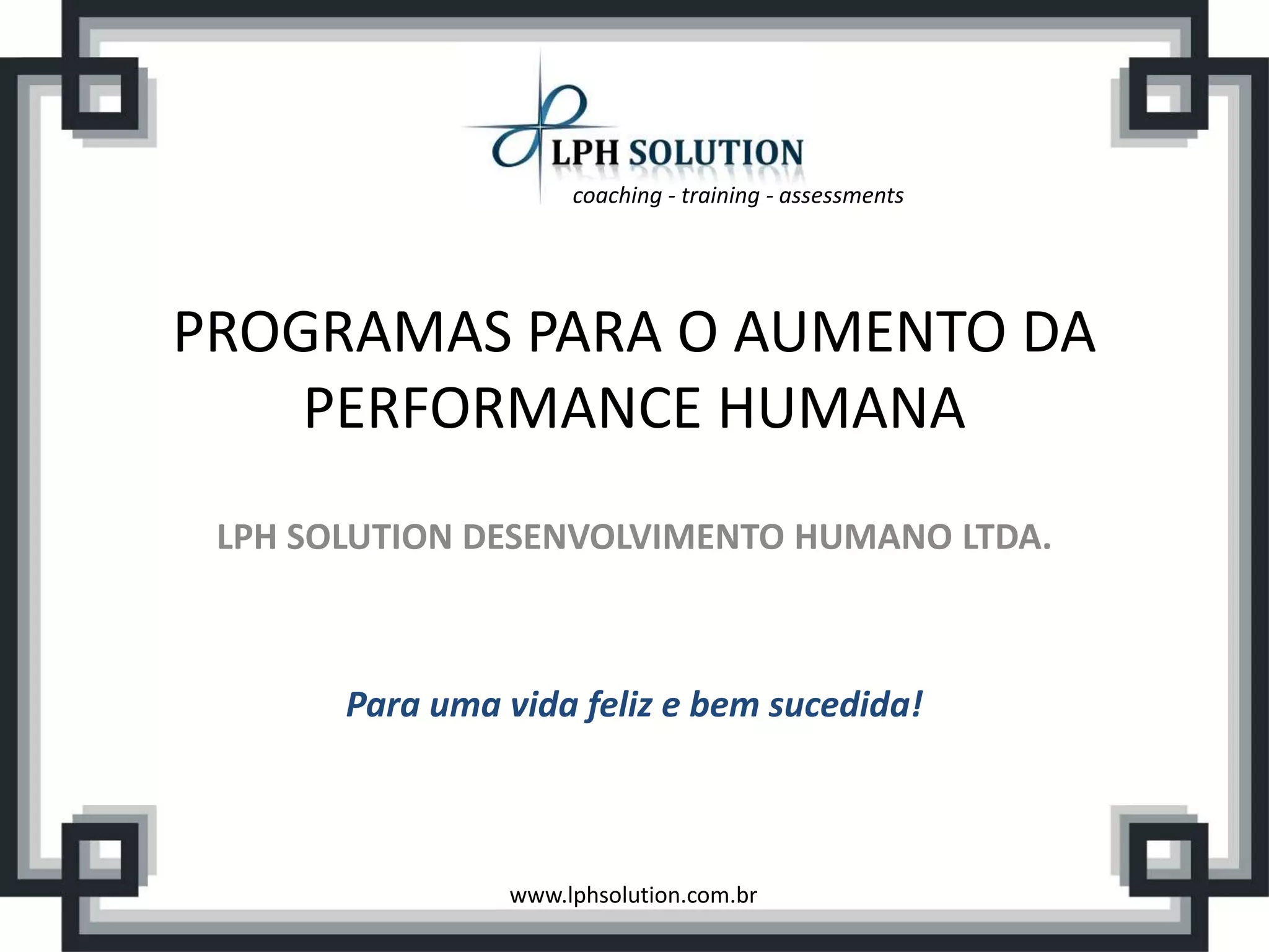 1) A empresa LPH Solution oferece programas de coaching, treinamentos e avaliações para aumentar o desempenho humano.