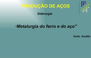 O documento descreve o processo de produção de aços, começando pela extração do minério de ferro no alto-forno, onde é produzido o ferro gusa. O gusa passa por processos para remover carbono e impurezas e produzir o aço no converter LD. O aço é então refinado e pode receber ligas metálicas antes de ser solidificado em lingotes ou barras.