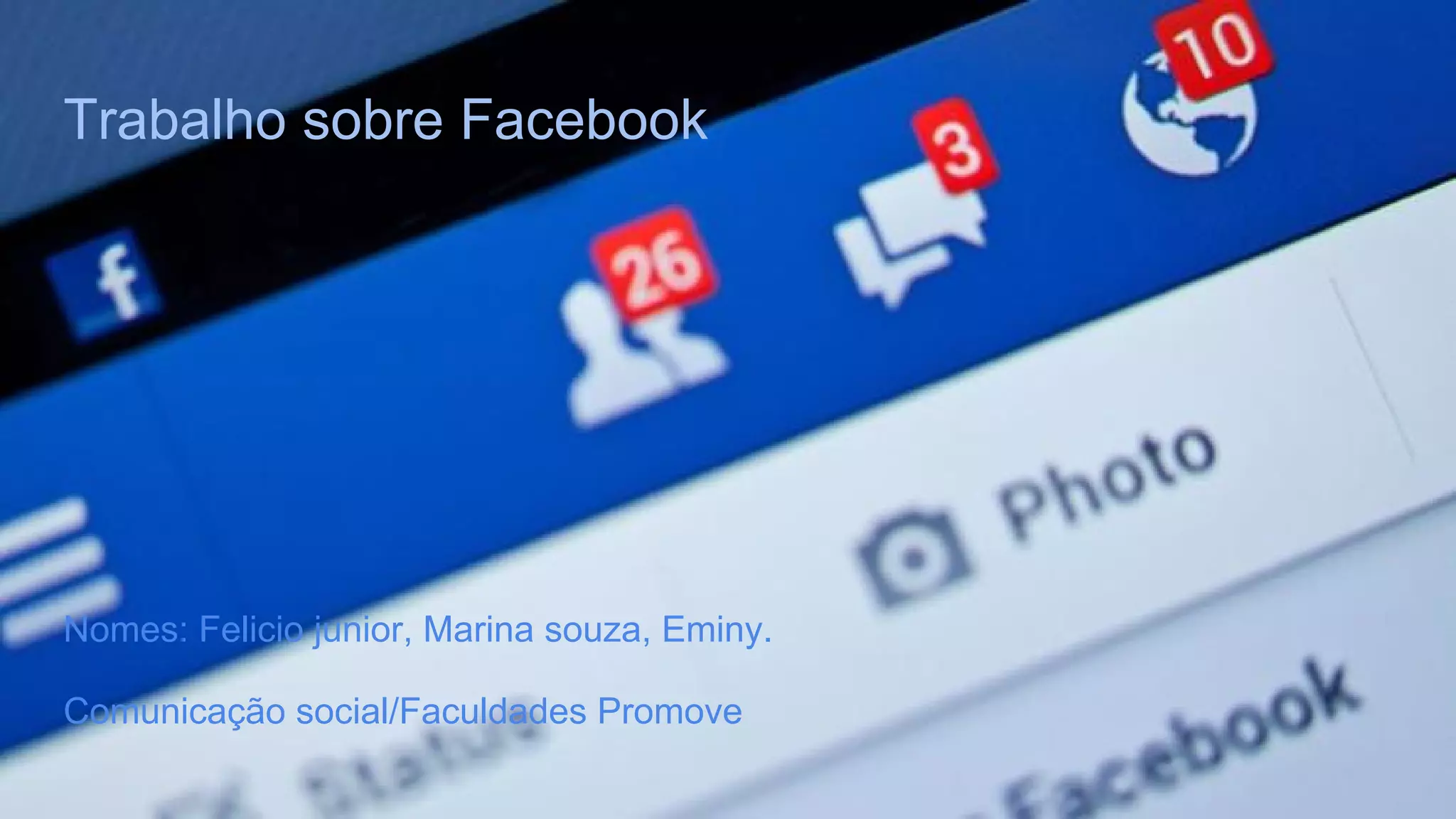 O documento discute o histórico e desenvolvimento do Facebook, incluindo sua criação na Universidade de Harvard em 2004, seu crescimento para 1,5 bilhão de usuários em 2015, e suas diversas funções atuais como publicidade, vídeos, música e jogos.