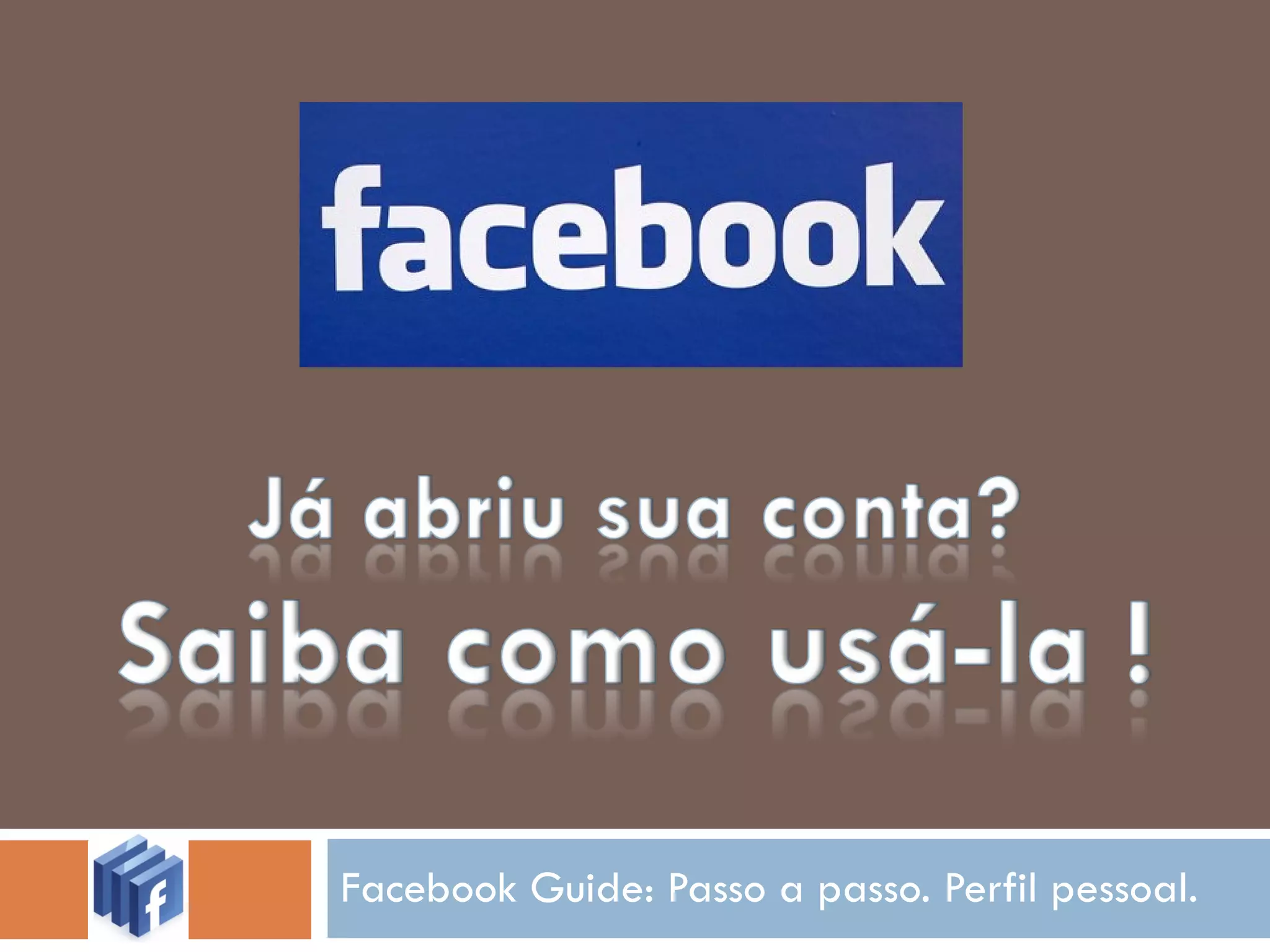 O documento fornece um guia passo a passo sobre como usar as principais funcionalidades do Facebook, incluindo como configurar seu perfil, adicionar amigos, interagir com publicações, enviar mensagens e ajustar configurações de privacidade e conta.
