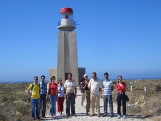 Este documento descreve o trabalho realizado por uma turma de estudantes sobre o tema "O Algarve e os Descobrimentos". Os alunos fizeram pesquisas sobre navegadores, instrumentos de navegação, a arte Manuelina e especiarias. Apresentaram seus achados em exposições, declamaram poemas e dramatizaram o poema "O Mostrengo". Com este projeto, aprenderam sobre a história de Portugal e sua identidade nacional.