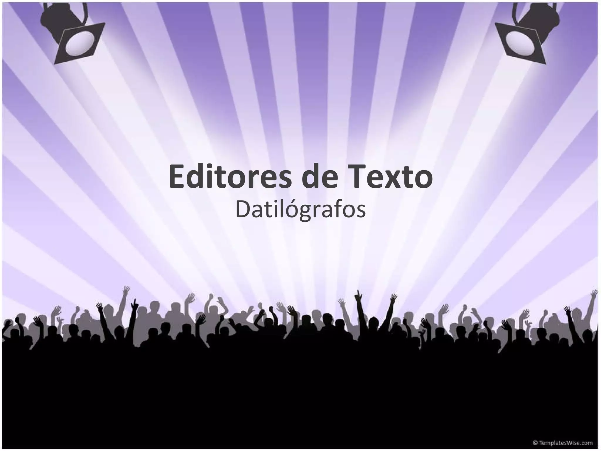 O documento discute editores de texto, como eram escritos textos antigamente e as facilidades trazidas pelos editores de texto. Também aborda suítes de aplicativos, funções tradicionais como processamento de texto e planilhas, melhorias, editores de texto online, edição colaborativa e possibilidades futuras como editores com reconhecimento de fala e pensamento.