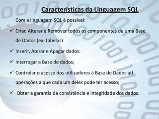 O documento resume a história e conceitos fundamentais de bancos de dados, desde as primeiras aplicações na década de 1960 até as tendências atuais. Aborda os principais modelos de banco de dados, a linguagem SQL e sistemas gerenciadores de bancos de dados.
