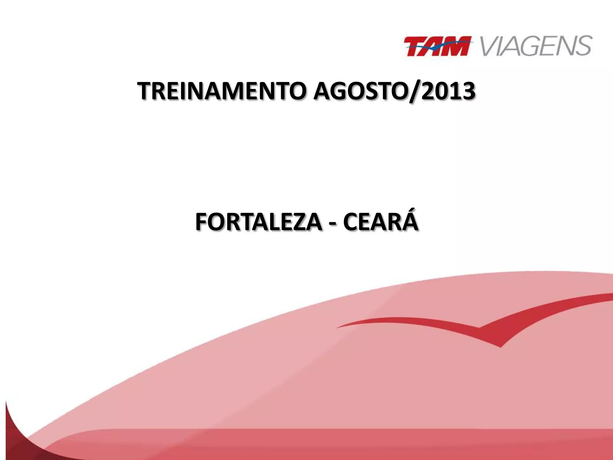 O documento fornece informações sobre Fortaleza, Ceará, incluindo sua localização, principais praias e opções de hospedagem. As praias de Iracema, Meireles e Mucuripe são destacadas como as principais praias urbanas, enquanto a Praia do Futuro é a única recomendada para banho. Várias opções de hotéis são listadas nessas praias e em Cumbuco.