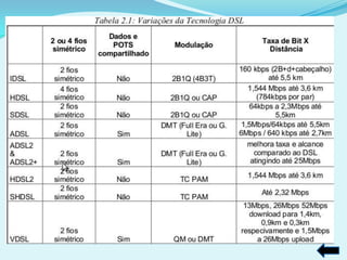 ADSL (Linha de Assinante Digital Assimétrica) → a nível Brasil já