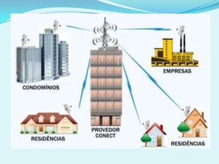 Rádio → velocidades semelhantes ao ADSL e cabo;