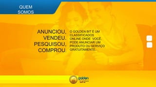 O documento descreve o funcionamento do site Golden Bit, um classificados online e sistema de moeda virtual. O site permite que usuários anunciem produtos e serviços gratuitamente e realizem compras e vendas utilizando a moeda virtual Goldenbits. Os usuários podem acumular Goldenbits realizando atividades diárias no site ou indicando o site para amigos.
