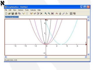 Este documento propõe uma atividade para auxiliar alunos do ensino médio a compreenderem gráficos de funções quadráticas utilizando o software Graphmática. A atividade guiará os alunos a reconstruírem gráficos de funções através de translações, compressões, alongamentos e reflexões da função-mãe y=x2, desenvolvendo entendimento sobre como as equações se relacionam aos gráficos. Uma lista de exercícios irá pedir aos alunos que comparem gráficos de funções modificadas