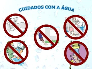 O documento descreve o ciclo da água, explicando como a água é essencial para a hidratação, higiene, cozinhar, tarefas domésticas e lazer. Ele também fornece um link para um vídeo no YouTube que explica o ciclo da água de forma visual.