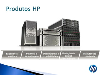 O documento discute as tendências do mercado de TI, incluindo virtualização, big data, mobilidade e nuvem. Também apresenta os novos servidores HP ProLiant Gen8, destacando suas capacidades de automação, monitoramento e atualização para melhorar a eficiência operacional e reduzir custos.