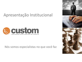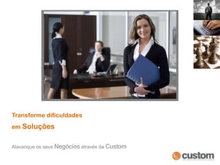 Este documento descreve os produtos e serviços de uma empresa chamada Custom especializada em sistemas e serviços de gestão de varejo. A Custom oferece soluções como ERP, CRM, WMS e BI desenvolvidas para o mercado varejista, além de consultoria especializada. Os clientes da Custom incluem grandes redes de vestuário e calçados.