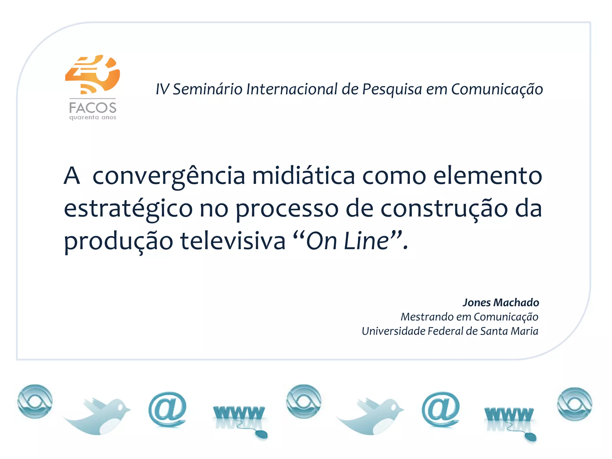 Este documento analisa a série de televisão "On Line" produzida pela RBS TV no Rio Grande do Sul, Brasil. O resumo descreve como a convergência midiática é usada strategicamente na série através da integração da televisão com plataformas digitais como o site e as redes sociais para engajar os telespectadores.