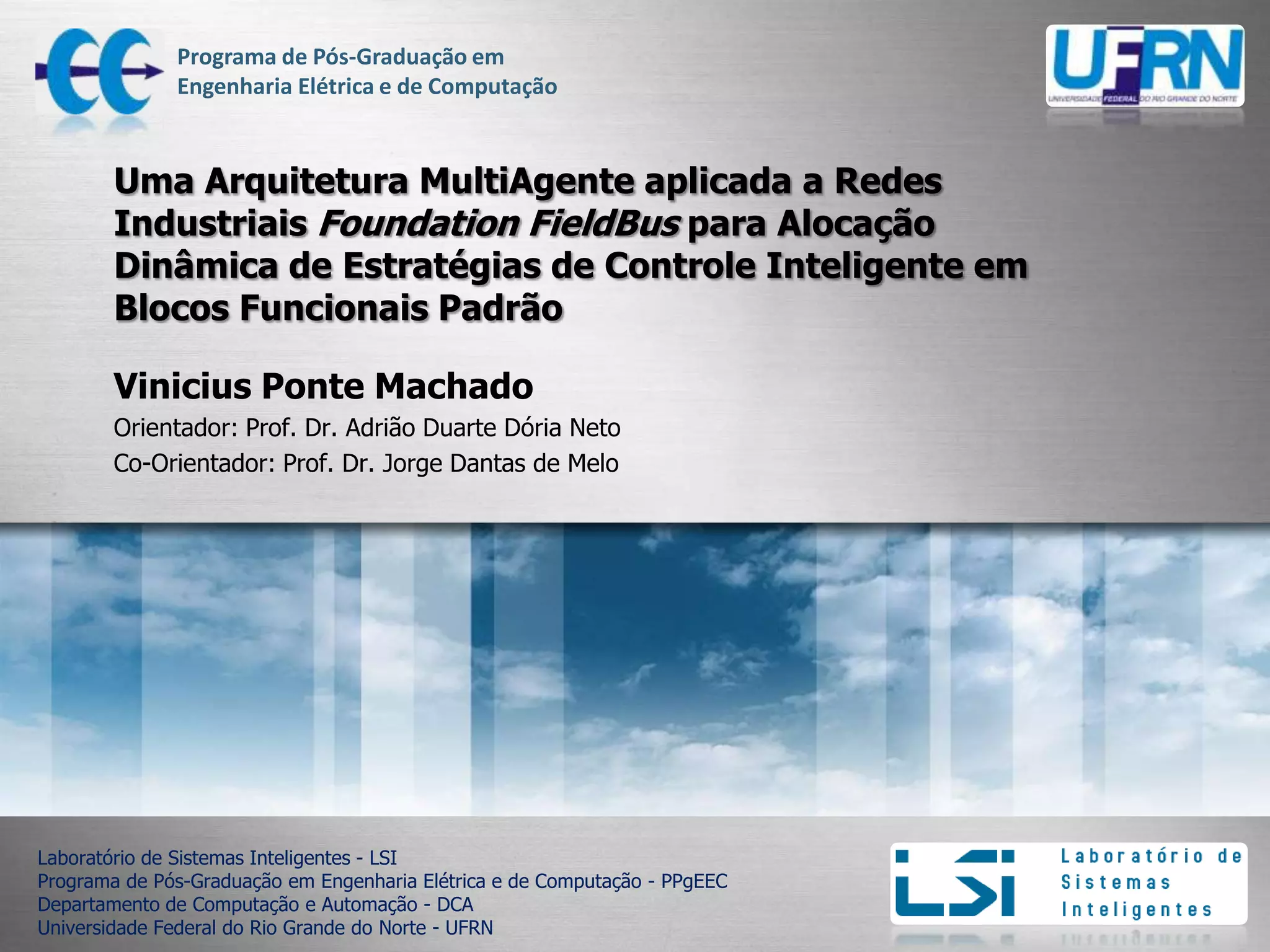 1) O documento descreve uma arquitetura multiagente aplicada a redes industriais Foundation Fieldbus para alocação dinâmica de estratégias de controle inteligente em blocos funcionais padrão.
