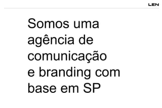 Este documento apresenta vários projetos de comunicação e branding de uma agência chamada LEN para clientes do setor imobiliário. Inclui resumos de campanhas para lançamentos de empreendimentos imobiliários, identidade visual e materiais de comunicação para incorporadoras. Também apresenta projetos de padronização de marca e showroom para a Camargo Corrêa Desenvolvimento Imobiliário.