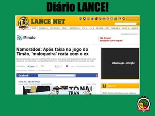 O documento resume as principais estatísticas sobre o uso das redes sociais no Brasil em 2012-2013, como o tempo gasto online e em redes sociais, audiência por idade e região, e crescimento do consumo de vídeo. Ele também discute a presença da marca Lancenet nas redes sociais, com crescimento de seguidores e engajamento.
