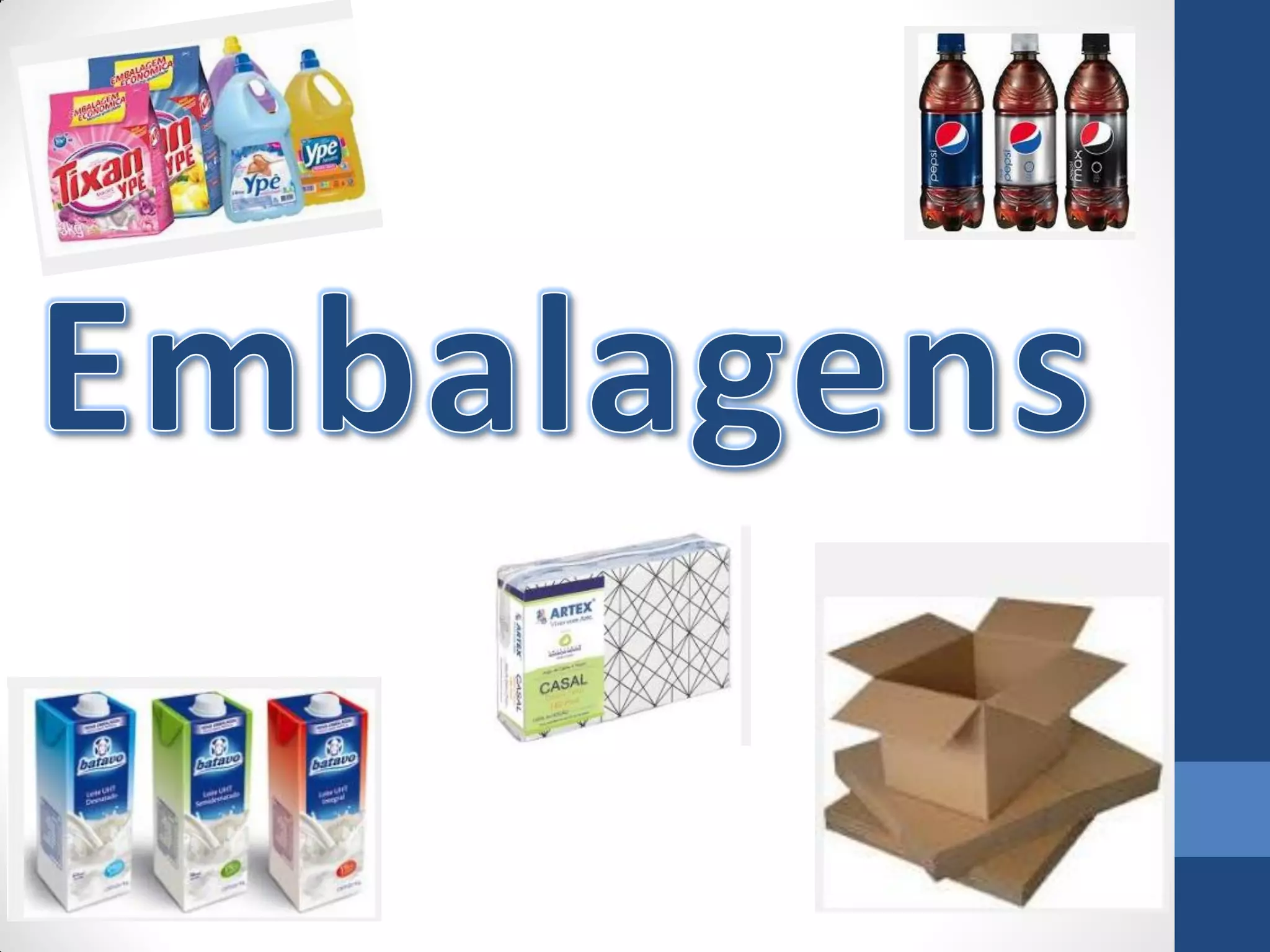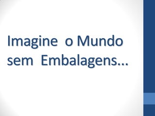 O documento discute a importância das embalagens para proteger e viabilizar a distribuição de produtos, além de atrair consumidores. Apresenta os tipos de embalagem, fatores de projeto, materiais, e impactos ambientais. Também destaca como embalagens adequadas podem melhorar a eficiência da cadeia produtiva e reduzir custos.