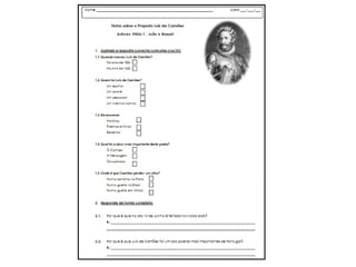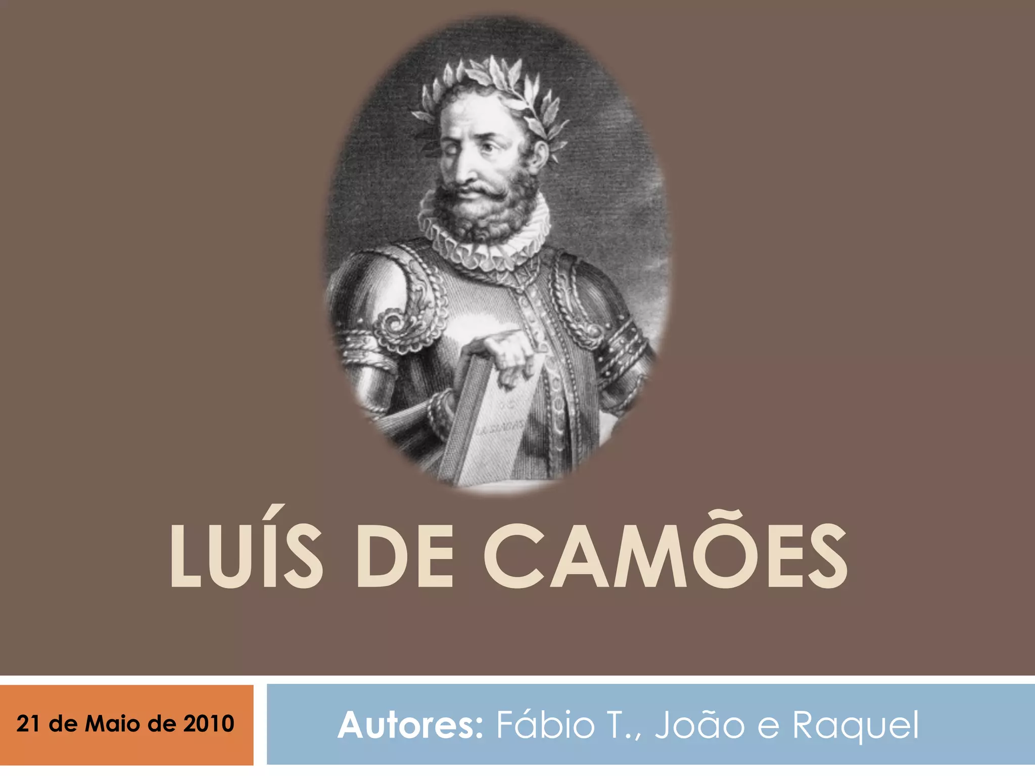 Luís de Camões nasceu em 1524 e morreu em 1580. Ele era um poeta português que escrevia poemas de amor e sobre a história de Portugal. Sua obra mais famosa foi "Os Lusíadas". Ele também era soldado e viajava, o que o inspirou a escrever sobre suas experiências.