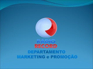 Este documento apresenta o departamento de marketing da Rádio Record 990 AM, com o objetivo de captar recursos através da comercialização de espaços publicitários. Ele descreve a criação de uma equipe de vendas, a busca de patrocinadores, a criação de campanhas promocionais e produtos para venda, e as normas para fornecimento de materiais publicitários.