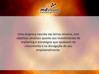 Uma empresa brasileira de marketing visual oferece serviços como logotipos, sites, folhetos, vídeos e e-mail marketing para ajudar empresas a crescerem e divulgarem seus produtos e serviços de forma profissional e atraente.