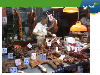 Este documento fornece um resumo das principais tendências do mercado de consumo na China. A população chinesa está envelhecendo e urbanizando rapidamente, com mais de 1 bilhão de pessoas vivendo em áreas urbanas. As classes média e alta da China, representadas pelas classes A, B e C, estão em rápido crescimento e representam uma grande oportunidade para produtos de luxo e estilo de vida. As principais cidades da China, como Guangzhou, Xangai e Pequim, lideram os gastos com consumo. Al