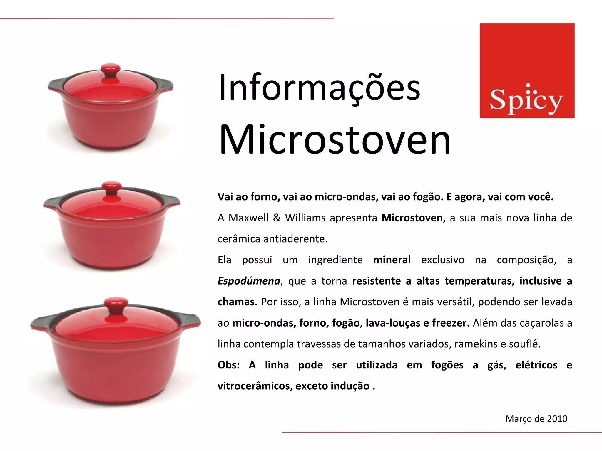 1) A linha Microstoven de cerâmica antiaderente pode ser utilizada em vários tipos de fogão e é resistente a altas temperaturas.