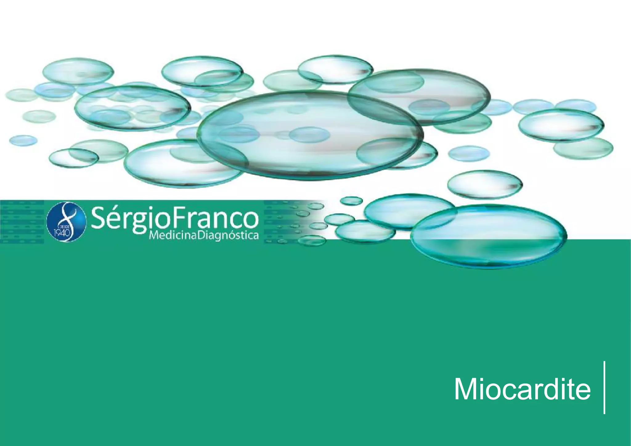 A miocardite é uma inflamação do músculo cardíaco geralmente causada por infecções virais ou bacterianas. Os sintomas incluem febre, dor no peito e aceleração dos batimentos cardíacos. O diagnóstico é feito através de exames como eletrocardiograma, ecocardiograma e biópsia do coração. O tratamento foca na redução da inflamação e dos danos ao coração, podendo incluir antibióticos, anti-inflamatórios e repouso.