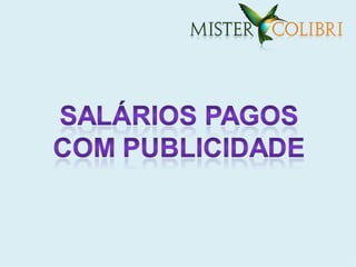 O documento apresenta informações sobre a Mister Colibri Group International, uma revista eletrônica que paga assinantes para assistir publicidades. Os assinantes podem ganhar de R$40 a R$200 por semana assistindo anúncios e também indicando novos assinantes. O documento detalha os planos de assinatura, compensação e como os membros podem ganhar dinheiro.