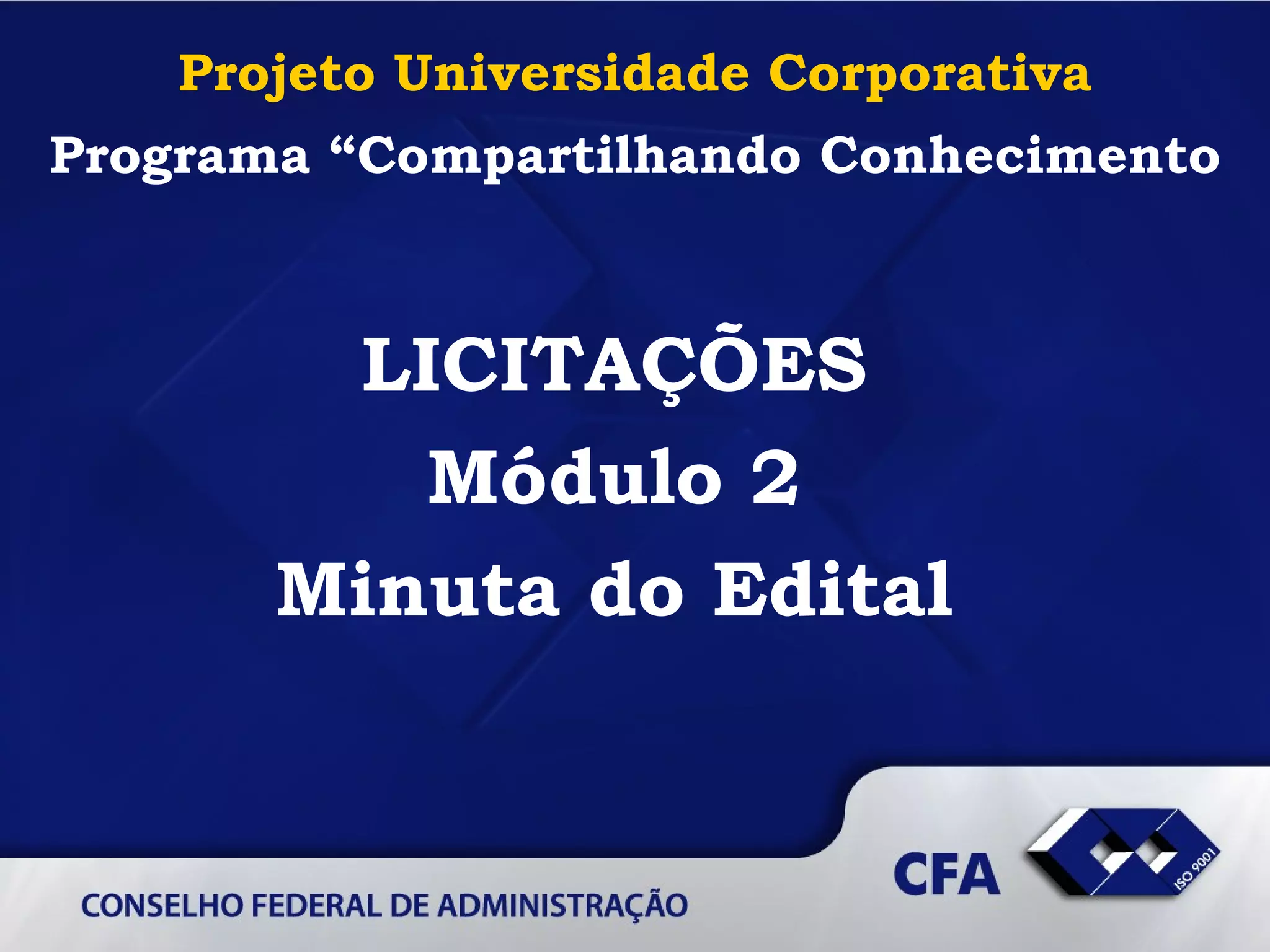 O documento discute os requisitos mínimos para editais de licitação, incluindo a necessidade de especificar o objeto, critérios de participação, apresentação de propostas, habilitação, julgamento, pagamento, obrigações, assinatura de contrato e demais disposições gerais. Também deve conter anexos com termo de referência, orçamento e minuta de contrato.