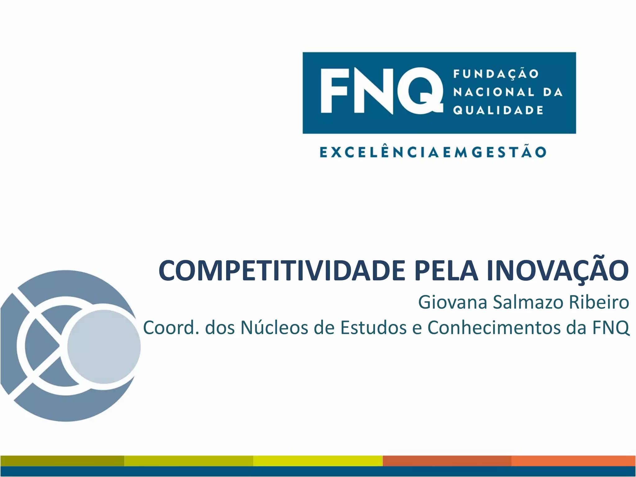 O documento discute a importância da inovação para a competitividade das organizações. Ele explica que o Modelo de Excelência da Gestão (MEG) da Fundação Nacional da Qualidade (FNQ) ajuda as empresas a melhorar sua gestão e capacidade de inovação de forma contínua. Também descreve como o Núcleo de Estudo Temático de Gestão de Inovação da FNQ promove debates e compartilhamento de boas práticas sobre inovação entre empresas participantes.